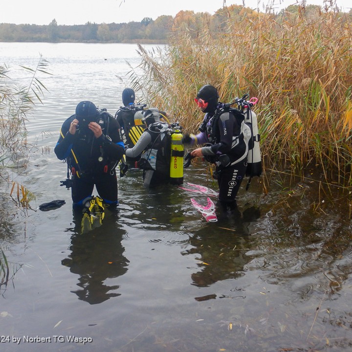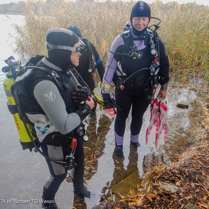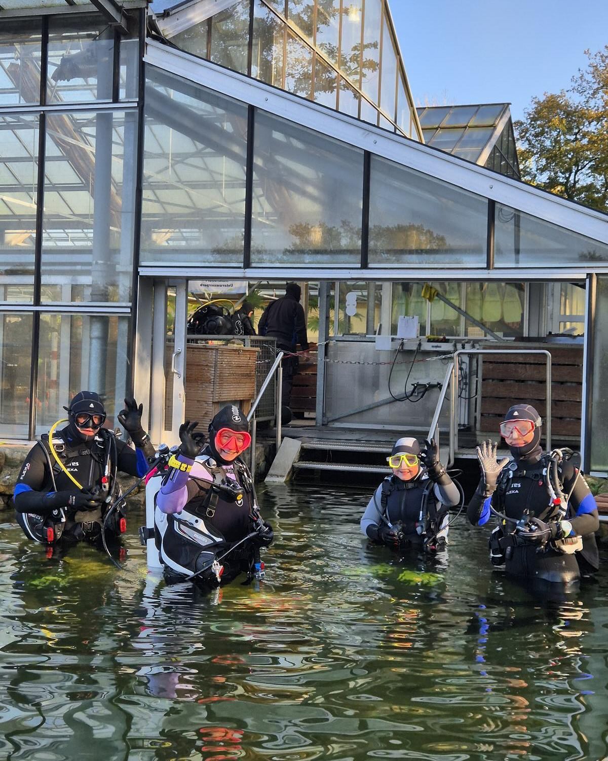 Bei trübem Wetter waren 18 aktive Taucherinnen und Taucher im Wasser. Darunter auch 3 Jugendliche Leonie, Fabian und Mika.