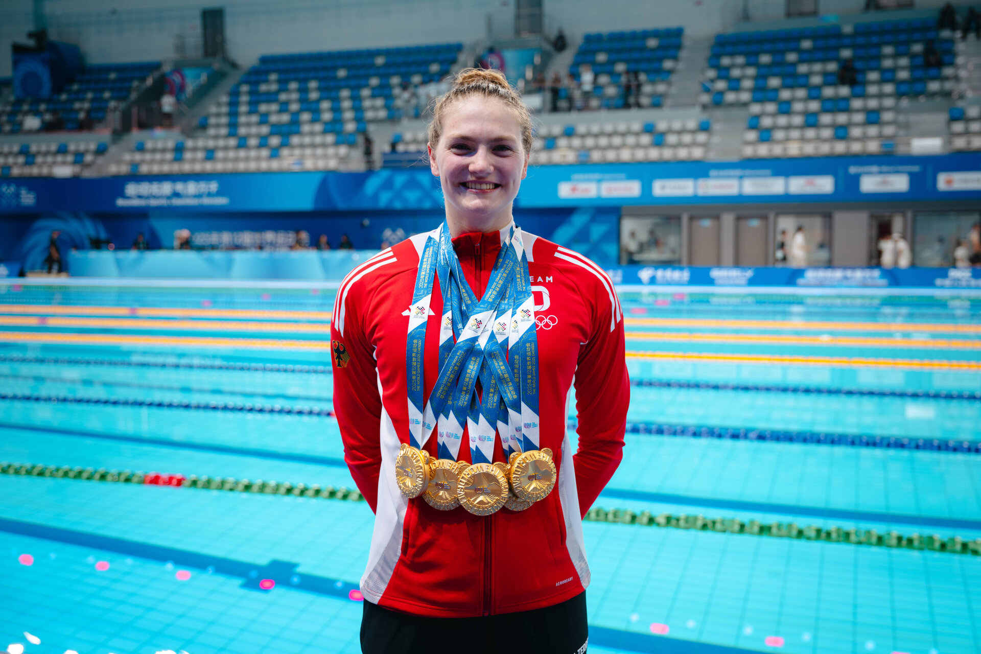 „2025 war wirklich ein sehr spannendes und lehrreiches Jahr für mich“, sagt Nina rückblickend. Die wichtigste Erkenntnis, die sie aus den sportlichen Höhenflügen gezogen hat, ist die, sich in diesem Jahr intensiv auf das Beckenschwimmen konzentrieren und dafür möglicherweise auch auf die WM im Rettungsschwimmen im Dezember in Südafrika verzichten zu wollen. „Ich glaube, dass ich darin noch deutlich mehr Potenzial zur Weiterentwicklung habe als im Lifesaving, deshalb möchte ich probieren, alles aus mir herauszuholen und zu schauen, wozu es reicht“, sagt sie. Die fünf Goldmedaillen aus Chengdu sehe sie auf diesem Weg als Ansporn. „Es ist auf keinen Fall so, dass mir im Rettungsschwimmen die Motivation fehlt. Im Gegenteil, die World Games haben meinen Hunger nach Erfolg noch mehr angefacht, und ich habe auch noch nicht die möglichen Zeiten ausgereizt, die in den verschiedenen Disziplinen denkbar wären. Aber ich glaube, dass es mir gut tun wird, neue Ziele zu haben“, sagt sie.